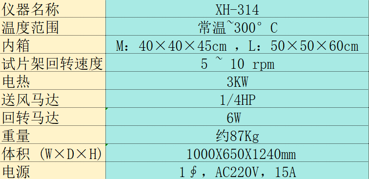原理:利用可控制的加熱系統(tǒng),使空氣由外部藉鼓風(fēng)機(jī)吸入后得以加熱成熱空氣,并藉由通風(fēng)管將熱空氣散布于工作室中,將利用過(guò)的熱空氣由儀器上方的出氣孔排出,以達(dá)到空氣循環(huán)的目的,進(jìn)而促進(jìn)試樣(試片)在熱空氣循環(huán)狀況下在一定時(shí)間后達(dá)到老化的目的(試樣物性衰退或變色等現(xiàn)象)。